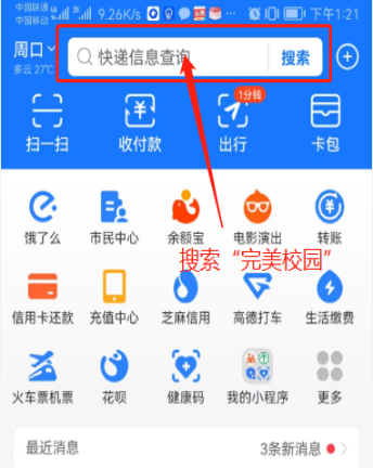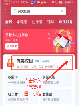 二、在“完美校园”中进行校园卡认证操作方法(以支付宝为例)